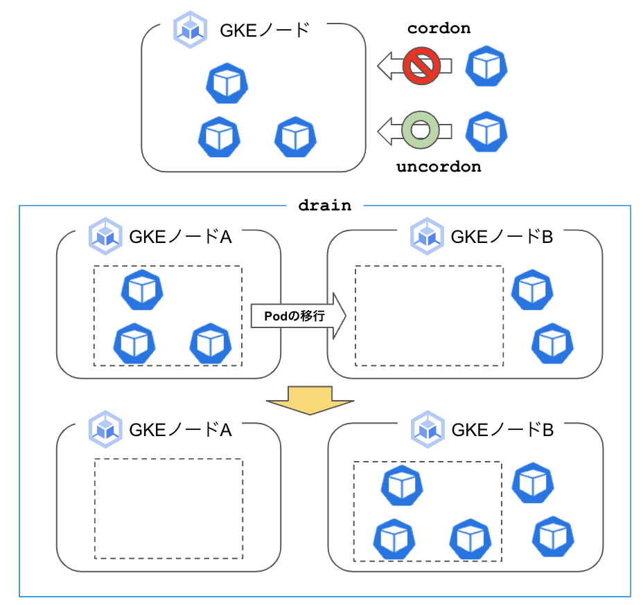 まずはこれらのコマンドについて簡単に解説していきます。 ポイントとしてはKubernetesのコンピュートリソースであるノードに異常が発生した場合に、速やかに実行すべき操作となります。1